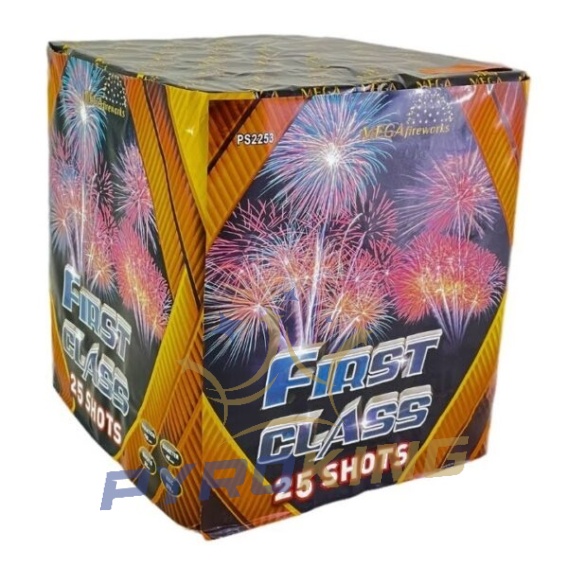 First Class PS2253 to imponująca wyrzutnia od Mega Fireworks. Każdy z 25 strzałów w kalibrze 48–50 mm generuje efekt złotej korony z kolorowymi, gwiazdkami, które rozświetlają niebo.