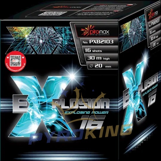 Explosion PXB2103 to wyrzutnia fajerwerków klasy F2 produkowana przez renomowaną firmę Piromax. Urządzenie oferuje dynamiczny pokaz z kolorowymi kometami przechodzącymi w opadające fale, crackling oraz chryzantemy. Dzięki niewielkim rozmiarom i intensywnym efektom, doskonale sprawdza się podczas rodzinnych uroczystości, imprez plenerowych i sylwestrowych wieczorów.
